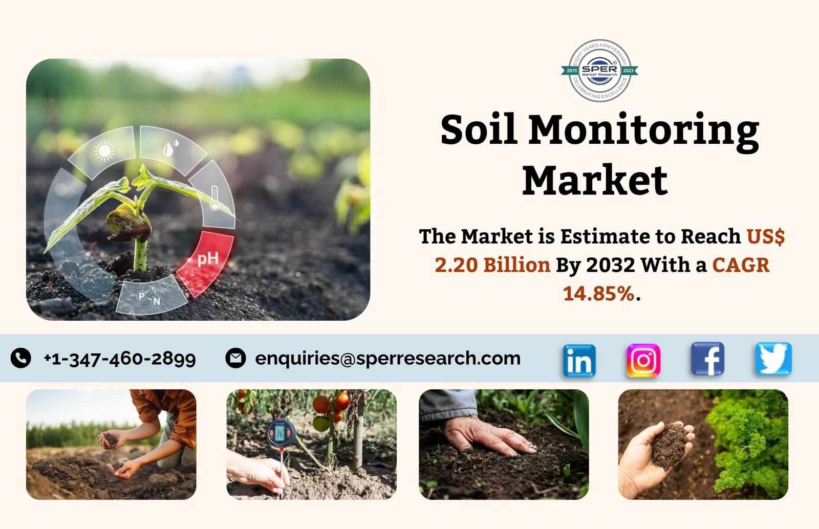 According to SPER Market Research, ‘Soil Monitoring Market Size-By Component, By Connectivity, By Application- Regional Outlook, Competitive Strategies and Segment Forecast to 2032’ states that the Global Soil monitoring market is estimated to reach USD 2.20 billion by 2032 with a CAGR of 14.85%.