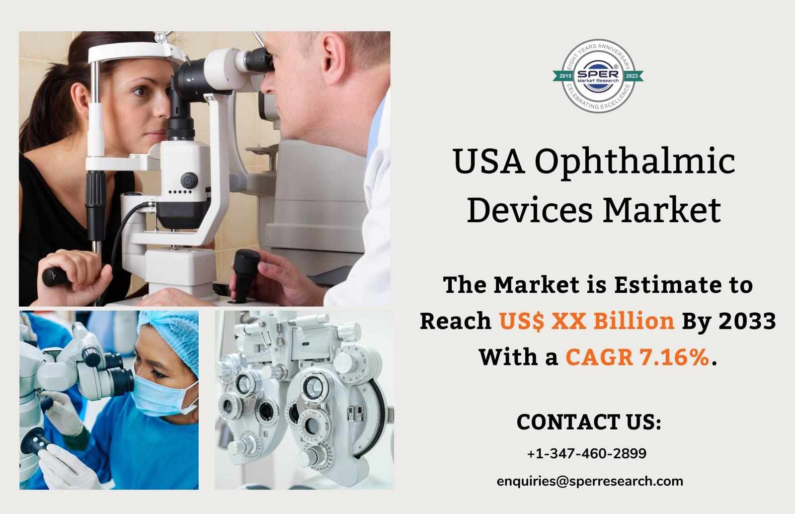 According to SPER Market Research, ‘USA Ophthalmic Devices Market Size- By Device Type- Regional Outlook, Competitive Strategies and Segment Forecast till 2033’ states that the USA Ophthalmic Devices Market is estimated to reach USD XX billion by 2033 with a CAGR of 7.16%.